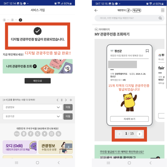 ▶디지털 관광주민증 발급이 완료되었습니다.
