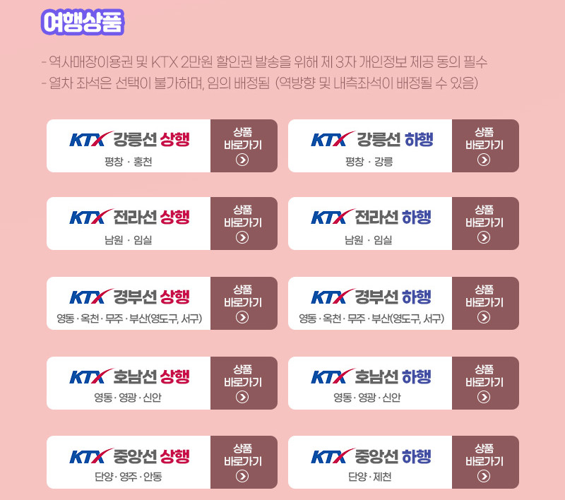 - KTX 열차 35% 할인 (단, 최저운임 이하로 할인 불가)