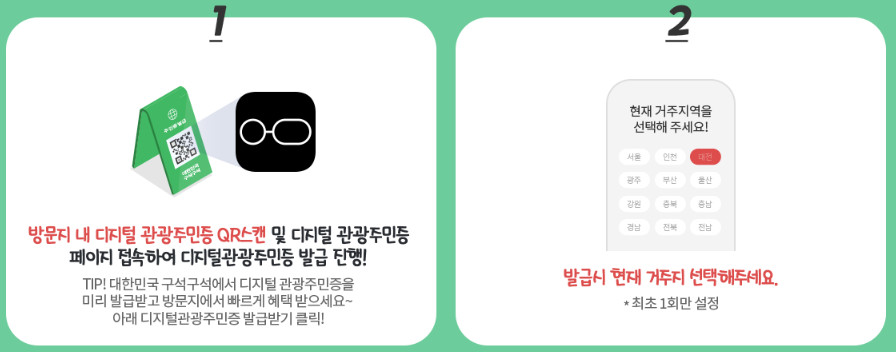 방문 지역 내에서 디지털 관광 주민증 QR코드를 스캔하거나 관련 페이지에 접속하여