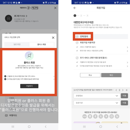 ▶일반회원과 플러스 회원 중 "플러스회원"으로 진행합니다.