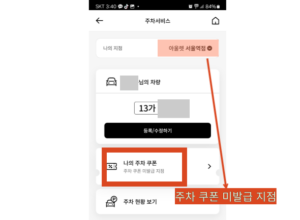 주차쿠폰을 발급받을수 있는 곳이 있으며, 미발급되는 지점도 있습니다.