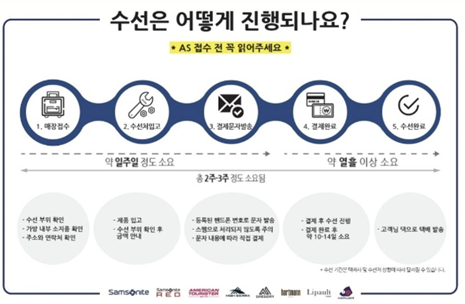 이번 포스팅에서는 아메리칸투어리스터 제품의 AS 관련된 내용을 자세하게 다뤄보도록 할 텐데요