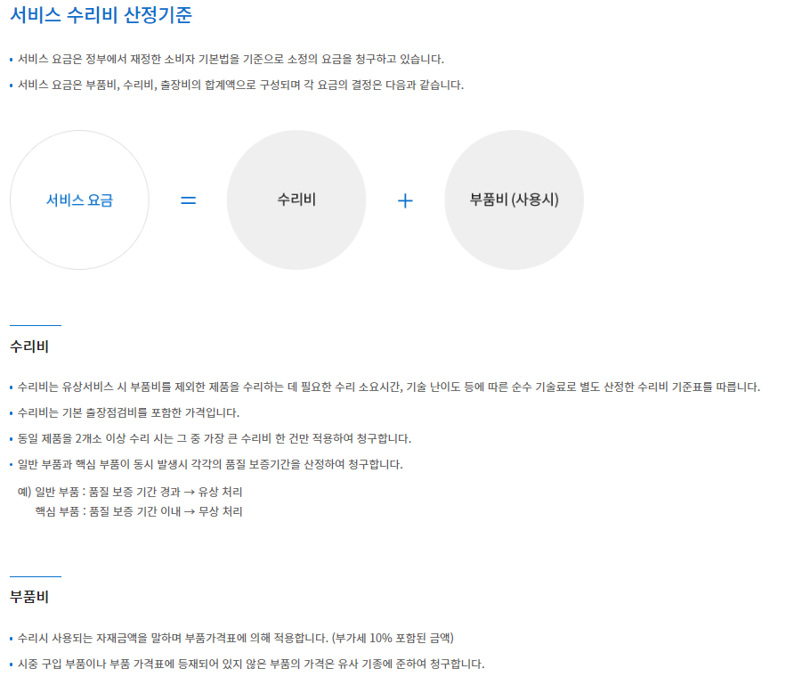 - 기본 출장 점검비용 : 20,000원 (제품 수리는 별도)