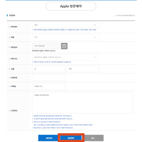 서비스센터를 방문하시기 전에 미리 예약을 하시면 대기 시간을 줄일 수 있습니다.