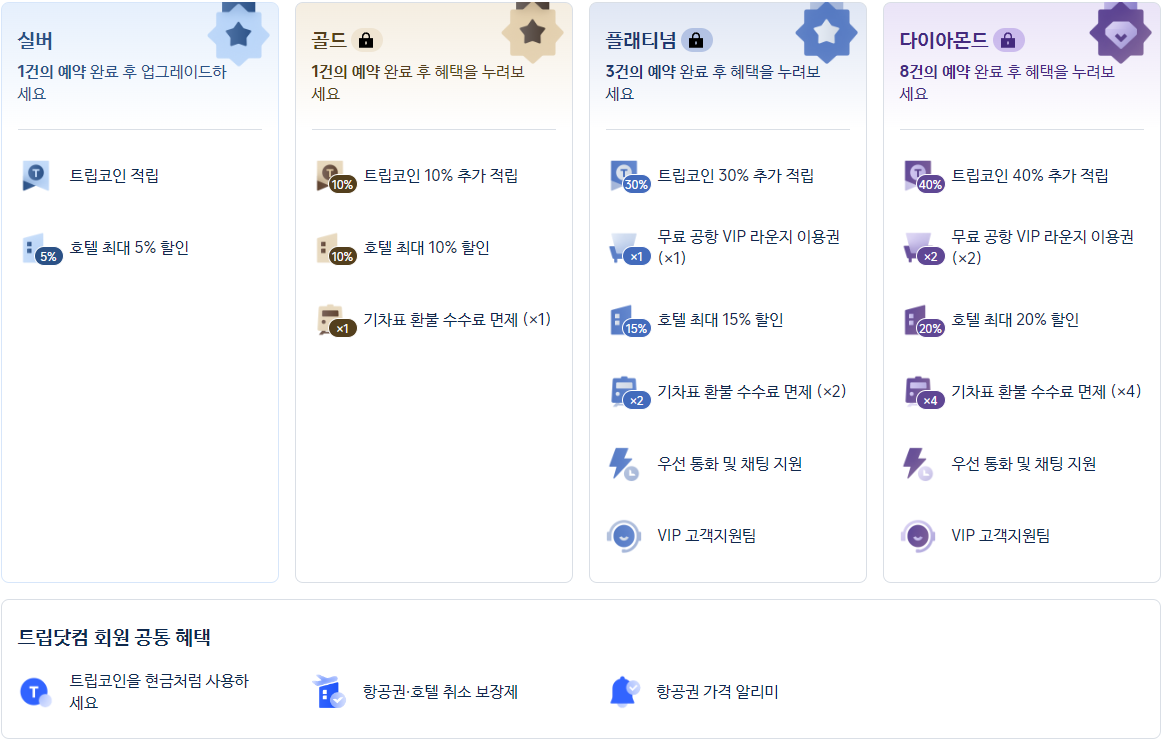멤버십 회원 등급이 높을수록 더 많은 트립코인 적립