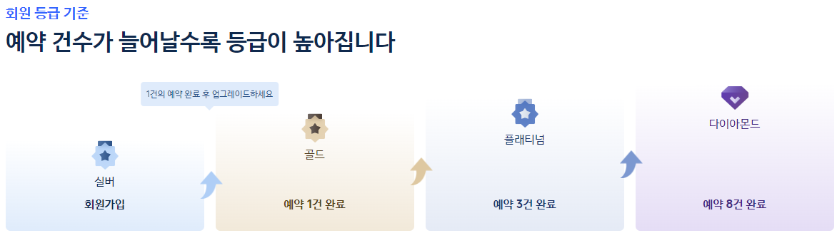 회원 등급에 따라 할인 혜택, 추가 포인트 적립, 무료 업그레이드 등의 혜택을 받을 수 있습니다.