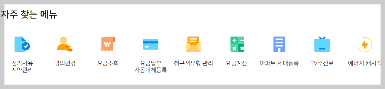 - 전기 요금 조회가 가능하며 납부할 수 있는 서비스이며, 필요시 자동이체 신청 및 관리