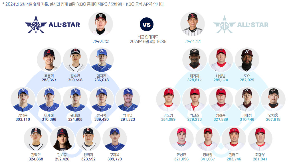 5월 27일부터 시작된 KBO 올스타전 팬투표가 시작되었고,