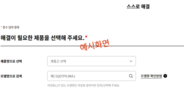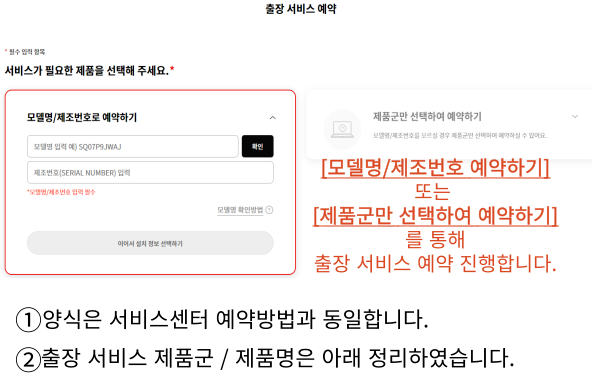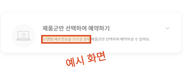 ▶모델명이나 제조번호 중 하나 이상을 잘 모르실 경우 [제품군/ 제품명 선택]하여 예약진행합니다.