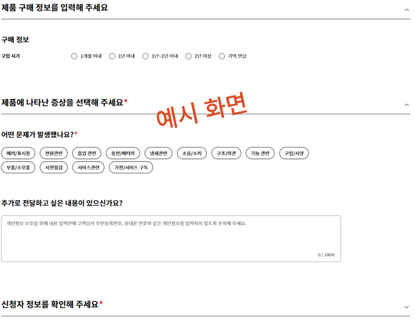 해당 제품의 정상작동이 될 수 있도록 도움을 주고 있으니 서비스 신청 전